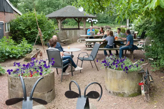 Even een kopje koffie drinken in de tuin van de boer? Bij boerderijterras Te Selle ben je van harte welkom. Schenk jezelf iets in, neem er een vers plakje eigengemaakte cake bij en geniet van het uitzicht.